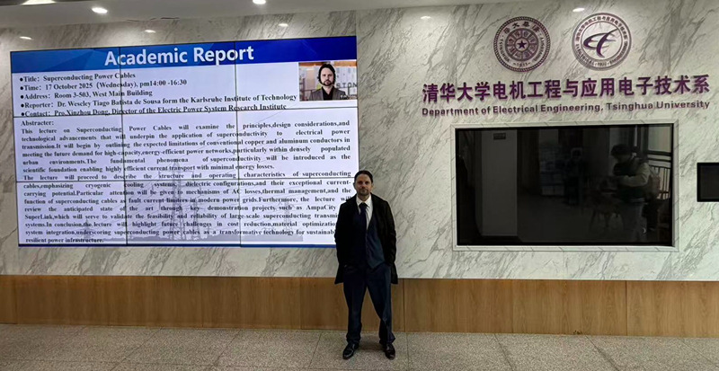 Hosted by Professor Dr. Xinzhou Dong at Tsinghua University, Dr. de Sousa presented his lecture, “Superconducting Power Cables: Building the Grid of Tomorrow.” The presentation detailed ongoing KIT research focused on the design, modeling, and operational integration of superconducting power cables, highlighting their pivotal role in creating more efficient and sustainable energy transmission infrastructures. The visit fostered a vibrant exchange of ideas with faculty and students, offering Dr. de Sousa deeper insight into the specific challenges and opportunities facing the modernization of the Chinese power grid.